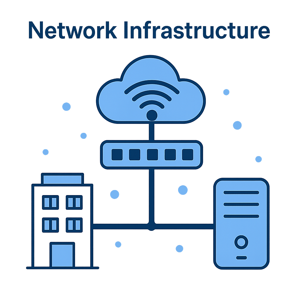 تقدم شركتنا حلول شاملة لتصميم وبناء وإدارة البنية التحتية للشبكات، سواء السلكية أو اللاسلكية. نضمن لعملائنا أداءً عاليًا للشبكة مع أمان واستقرار على مدار الساعة، مما يساعد المؤسسات على ربط فروعها وتبادل البيانات بسرعة وكفاءة.